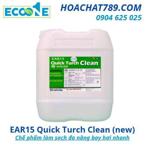 - Theo kinh nghiệm hơn 20 năm trong ngành vệ sinh công nghiệp, EAR15 Quick Turch Clean là một trong những chế phẩm làm sạch tối ưu nhất, vừa đảm bảo an toàn, vừa tiết kiệm, lại phù hợp với đa dạng môi trường. Nhiều khách hàng khách sạn, bệnh viện đã phản hồi tích cực về khả năng làm sạch nhanh chóng và khô ráo của sản phẩm.